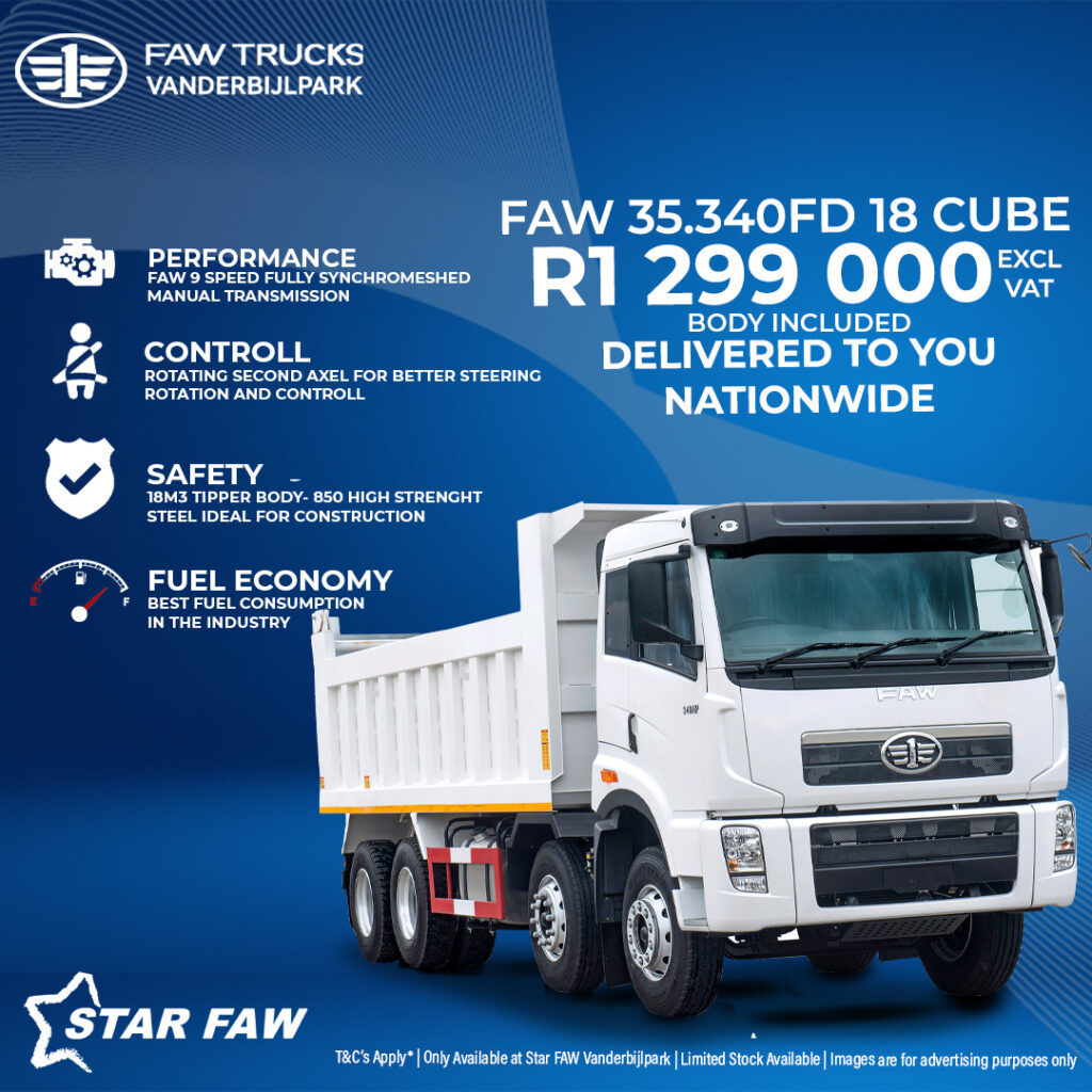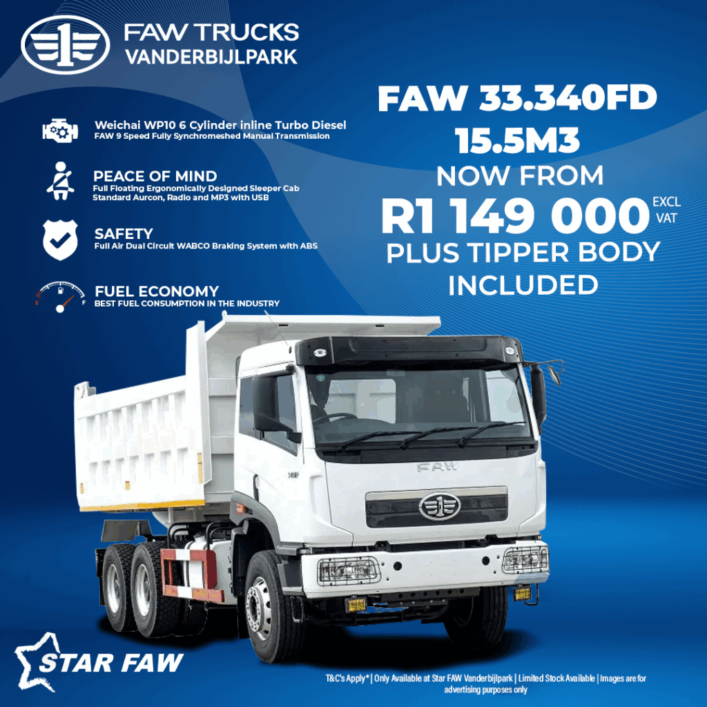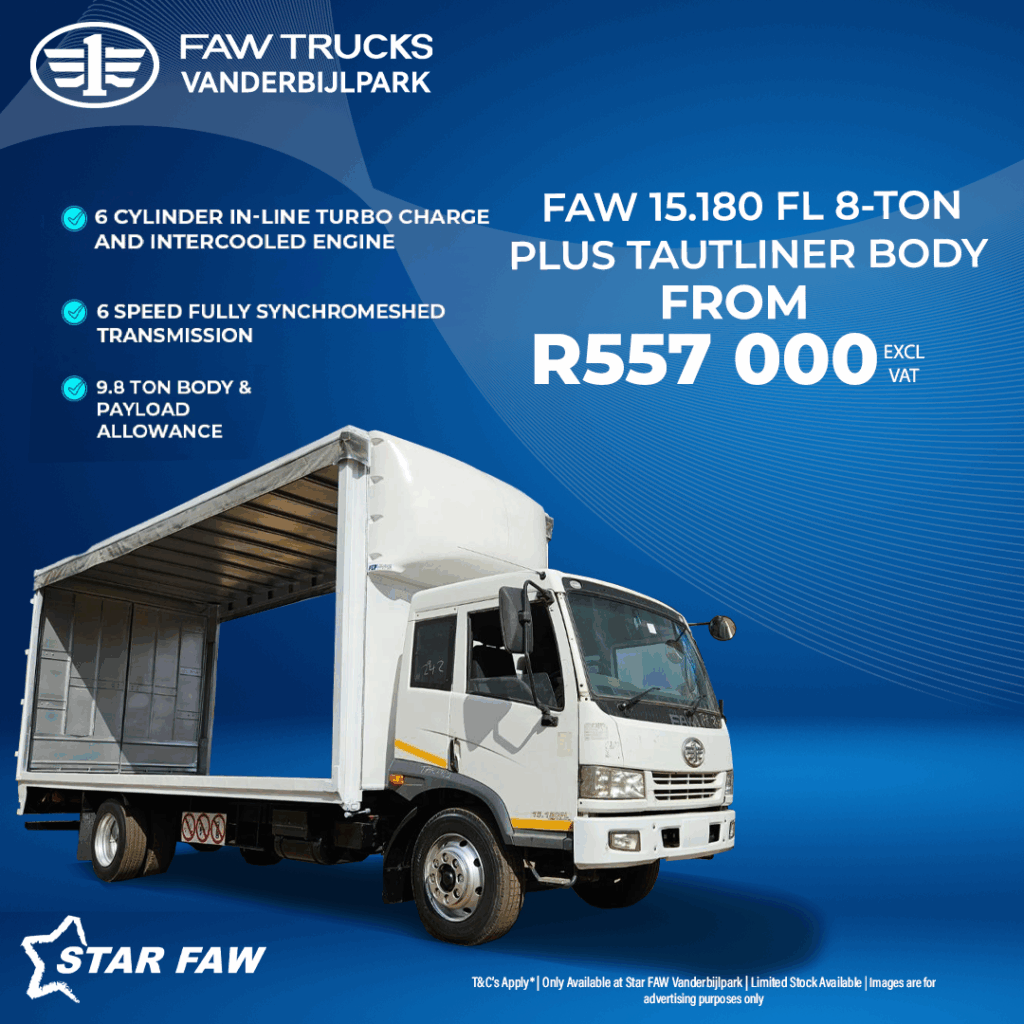 FAW Vehicle Manufacturers South Africa (Pty) Ltd (FAW SA), is a division of the Fortune 500 FAW China Group Corporation. Provider of rugged, reliable and affordable medium, heavy and extra heavy Commercial Vehicles to the Southern African market.